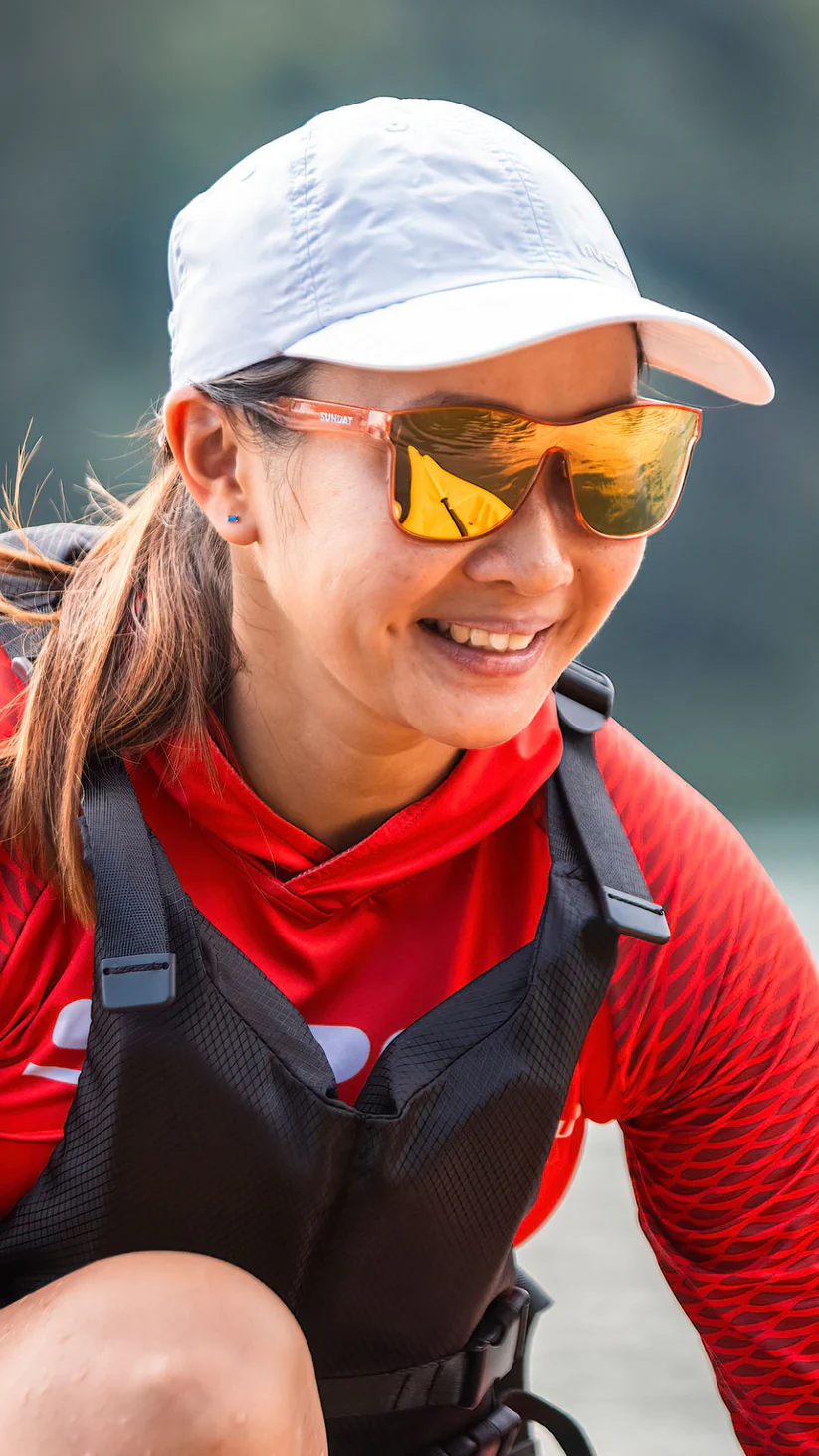 With glossy grapefruit-coloured frames that shimmer like the golden hour, these shades bring together effortless luxury and a dash of playful energy. Lightweight and tailored with a no-bounce Asian fit, they stay comfortably secure—whether you’re lounging poolside with a cocktail in hand or breezing down the coast with the top down.